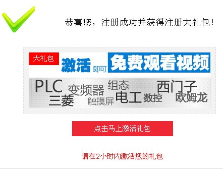 入賬號“注冊成功,獲得注冊大禮包”頁的提示: