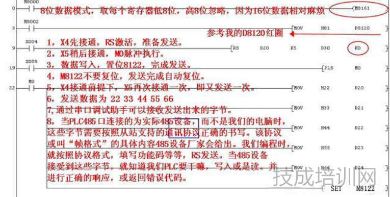 4、關(guān)于D8120,規(guī)定了PLC端串口發(fā)送接收環(huán)境。比較好理解。