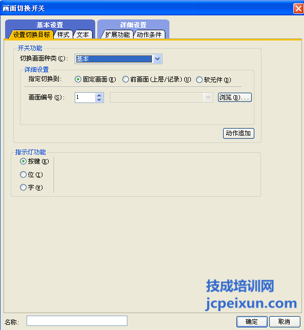首先我們需要組態(tài)切換畫面的類型,是切換為基本畫面還是切換為窗口畫面,然后在詳細畫面設(shè)置的時候指定需要切換到的畫面,可以直接切換為固定畫面,在畫面編號里面設(shè)定需要切換到的畫面編號,或者也可以點擊旁邊的瀏覽按鈕選擇里面需要切換到的畫面。