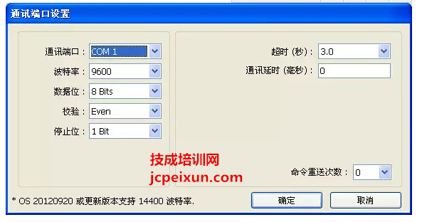 在這里我們要注意的是,PLC接口類型可以選擇 RS-232、RS-485 2W、RS-485 4W、以太網(wǎng)、USB 以及CAN Bus 。如果接口類型是RS-232、RS-485 2W、RS-485 4W,可以點(diǎn)擊對話框中的“設(shè)置”,可以“通訊端口設(shè)置”對話框,進(jìn)行設(shè)定通訊端口參數(shù),包括通訊端口、波特率、數(shù)據(jù)位、校驗(yàn)、停止位等。