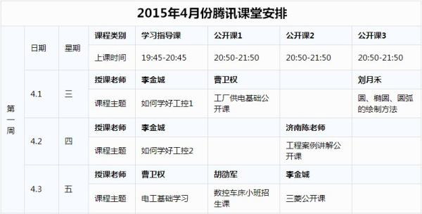 當(dāng)前位置:技成首頁(yè) > 文章中心 > 技成公告 > 技成2015年4月份騰訊課堂(公開(kāi)課)課程表