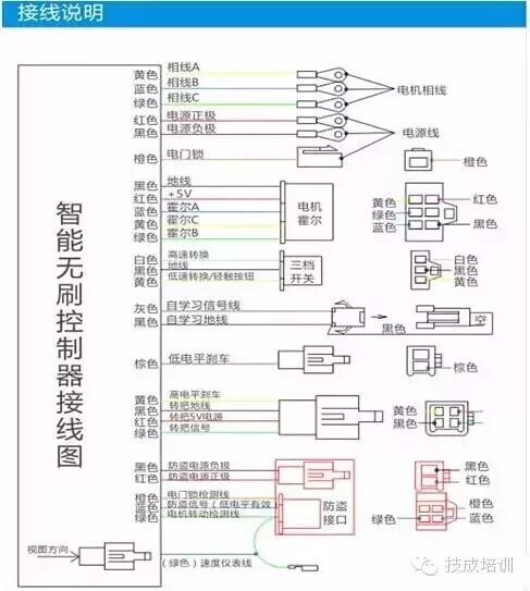 第五 控制器的每根線是什么意思可以看產(chǎn)介紹里面圖示說明。(下圖為高標(biāo)電動車控制器的線路圖)