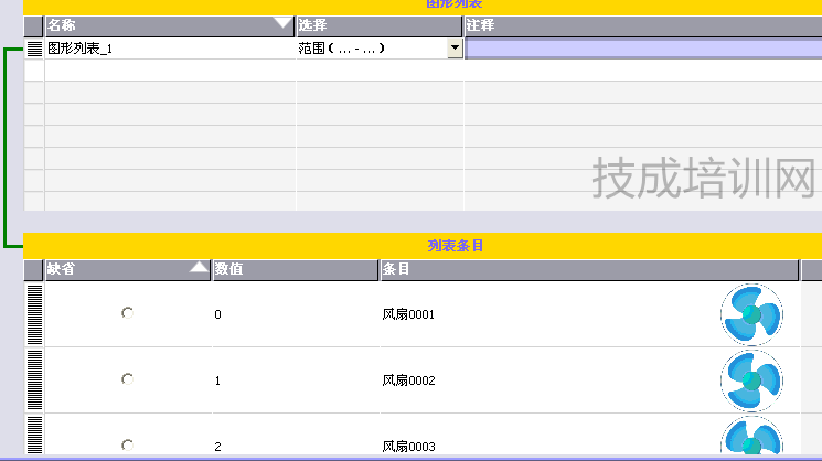 第三、我們要建立一個圖形列表,在圖片列表上面的“選擇”欄里面選擇“范圍(……)”選擇好這個后,在“列表條目”里面按照順序添加圖片進(jìn)去,使得每一個數(shù)字對應(yīng)一張圖片,比如說,0對應(yīng)張圖片,1對應(yīng)第二張圖片、依次下去。如圖: