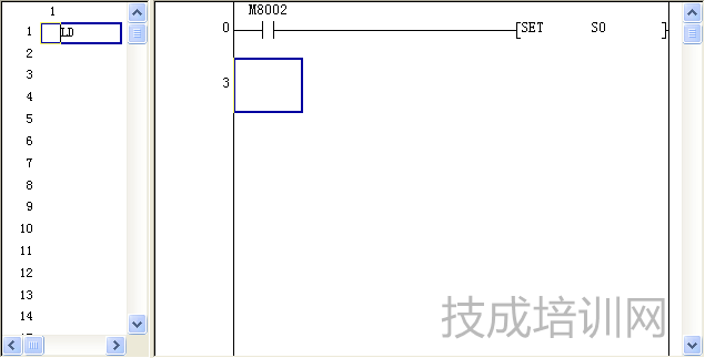首先啟動GX developer軟件,設(shè)置方法同前面介紹的單流程結(jié)構(gòu)的SFC編程,在此不贅述。本例中還是利用M8002作為啟動脈沖,在程序的塊梯形圖塊中輸入梯形圖,如圖2所示。