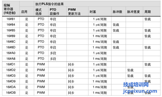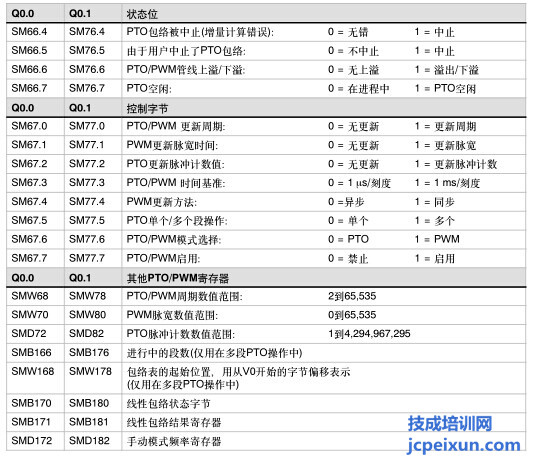 脈沖輸出指令是會(huì)從系統(tǒng)存儲(chǔ)器SM(包括控制字節(jié))中讀取數(shù)據(jù),從而控制PTO/PWM發(fā)生器,這樣我們就可以通過修改控制字節(jié),然后執(zhí)行PLS指令,來更改PTO或PWM信號(hào)波形。以下就附上PTO/PWM控制寄存器的SM標(biāo)志表和PTO/PWM控制字節(jié)參考表。