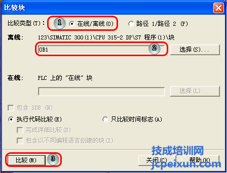 在線離線比較,指的是用電腦里的程序和PLC里的程序進行比較,查看電腦中的程序是否和PLC中的程序相同