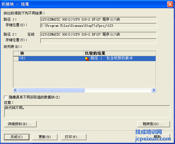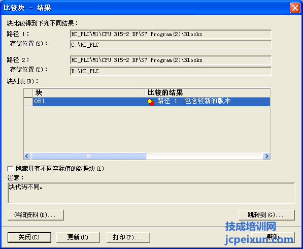 在Step 7中西門子為大家提供了比較塊功能,來幫助大家完成程序的比較,這樣大家就可以非常清楚被比較的兩個程序是否相同。