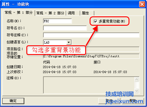 2 多重背景使用流程 1) 建立FB1并完成子程序內(nèi)容的編寫(xiě)