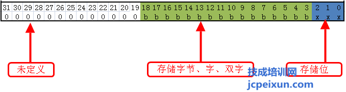32位指針尋址表示格式為: 地址存儲器標示符[32位地址指針]