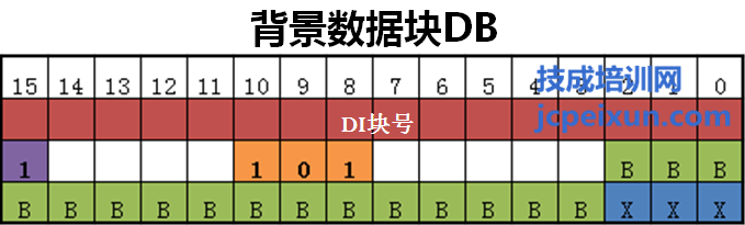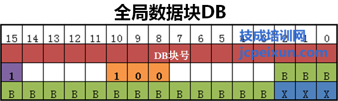 當(dāng)尋址為全局?jǐn)?shù)據(jù)塊DB時(shí)地址標(biāo)識(shí)位的內(nèi)容為100如圖 1-3所示,當(dāng)尋址為背景數(shù)據(jù)塊DI時(shí)地址標(biāo)識(shí)位的內(nèi)容為101如圖 1-4所示。