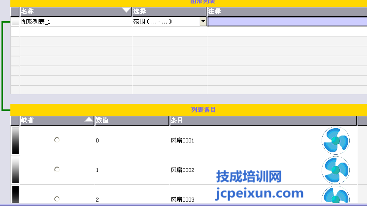 第三、我們要建立一個圖形列表,在圖片列表上面的“選擇”欄里面選擇“范圍(……)”選擇好這個后,在“列表條目”里面按照順序添加圖片進去,使得每一個數(shù)字對應一張圖片,比如說,0對應張圖片,1對應第二張圖片、依次下去。如圖: