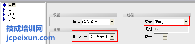 第四、在畫面上添加一個圖形I/O域。在其下面的屬性對話框中的“常規(guī)”選項里面關聯(lián)好建立的圖形列表,以及建立的變量MW0.如圖: