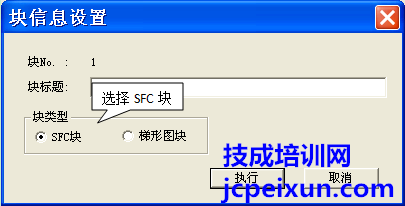 進(jìn)行SFC程序的變換(編譯),如果在變換時(shí)彈出了塊信息設(shè)置對(duì)話框,可不用理會(huì),直接點(diǎn)擊執(zhí)行按鈕即可。經(jīng)過變換后的程序如果成功,就可以進(jìn)行仿真實(shí)驗(yàn)或?qū)懭?/span>PLC進(jìn)行調(diào)試了。