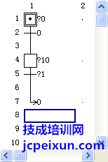 另外,SFC程序在執(zhí)行過程中,無一例外的會(huì)出現(xiàn)返回或跳轉(zhuǎn)的編輯問題。因此要在SFC程序中出現(xiàn)跳轉(zhuǎn)符號(hào),輸入方法是:把光標(biāo)移到方向線的下端,按F8快捷鍵或者點(diǎn)擊按鈕