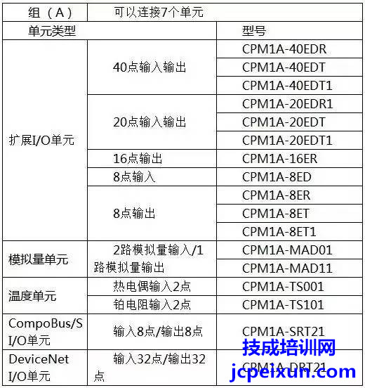 多可以帶7塊CPM的模塊,其中歸類為組B的模塊,一塊算兩塊,組A組B分類如下: