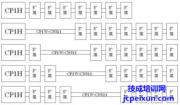 7.CP1H的擴(kuò)展模塊多能帶7塊,樣本上寫的在四臺之內(nèi)可以用連接電纜是什么意思?