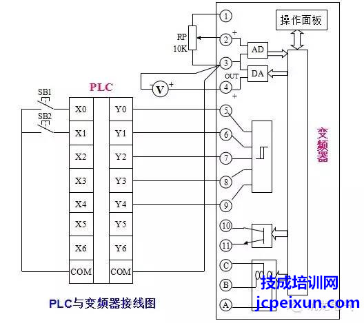 二、PLC與變頻器接線圖