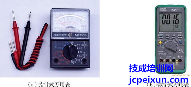 萬(wàn)用表是一種測(cè)量電壓、電流和電阻等參數(shù)的儀表,有指針式和數(shù)字式 2 種,其外形如圖1所示。