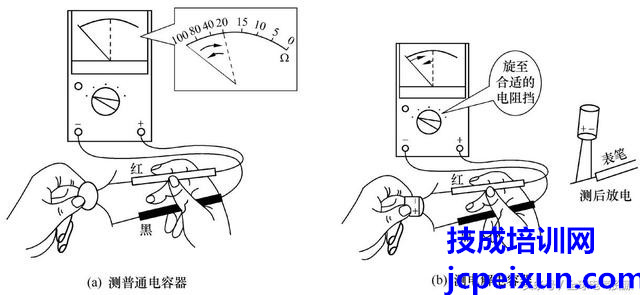 圖8 用萬(wàn)用表測(cè)量電容器的基本方法