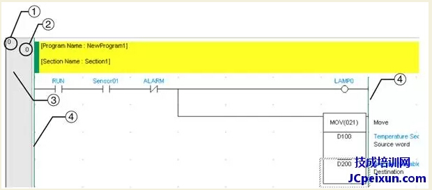 ⑦梯形圖程序段窗口----- 該窗口用于創(chuàng)建和編輯梯形圖程序。