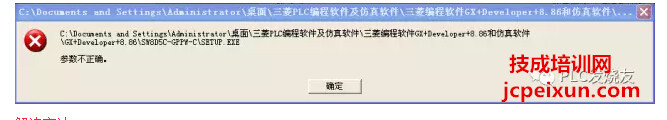 5、在安裝GX Developer軟件時,雙擊ENVMEL里面的SETUP.exe應(yīng)用程序出現(xiàn)參數(shù)不正確的錯誤,如下圖所示,這應(yīng)該怎么處理?