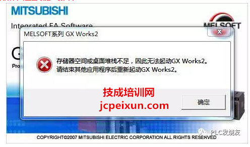 9、在安裝GX WORKS2軟件時能夠安裝成功,但是一打開軟件,就出現(xiàn)存儲器空間或桌面堆棧不足的錯誤,沒有辦法起動軟件,這應(yīng)該怎么解決?