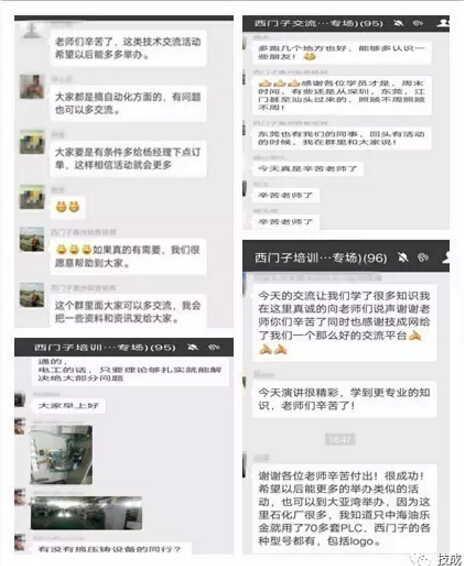 由于交流會進(jìn)程中的熱烈討論氣氛,原定于下午17:20分結(jié)束的活動延遲了半個多小時,活動結(jié)束后學(xué)員仍然意猶未盡。根據(jù)學(xué)員在活動后提出了資料、軟件、會議PPT分享及一些后期技術(shù)指導(dǎo)的要求,技成培訓(xùn)網(wǎng)建立了微信群,讓大家互相交流學(xué)習(xí)。西門子(中國)有限公司的技術(shù)人員也表示后期會將會議資料的和一些軟件資料分享給大家。